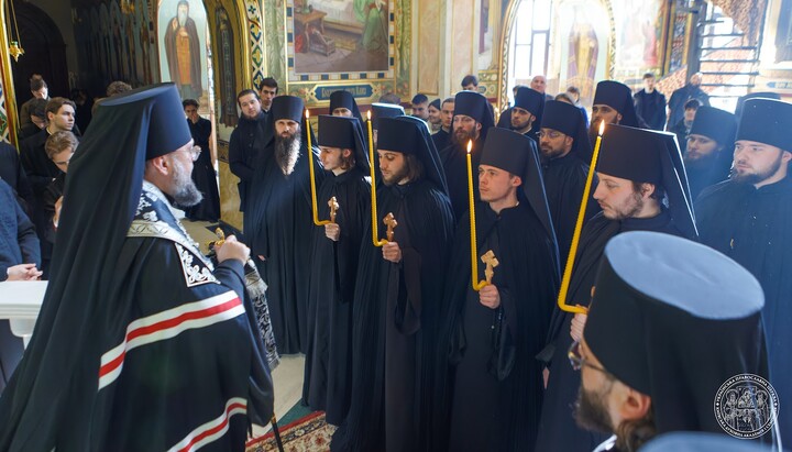 Ректор Київських духовних шкіл архієпископ Сильвестр постриг у чернецтво чотирьох студентів академії та семінарії.