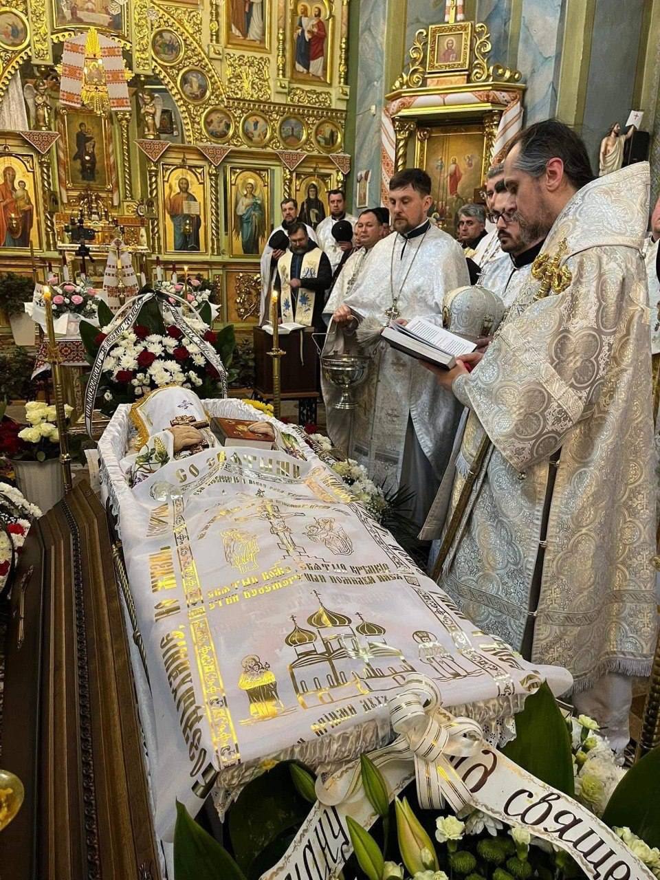 У Тернопільській єпархії ПЦУ відспівували свого кліра в похоронному покрові з написами церковнослов'янською.