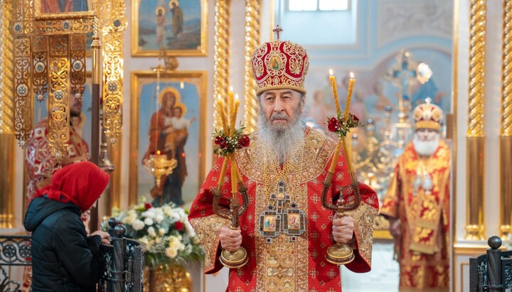 Предстоятель УПЦ звершив пасхальне богослужіння в Казанському соборі Флорівського монастиря і роздав подарунки дітям.