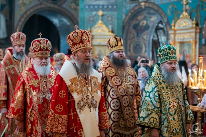 Правлячому архієрею співслужили керуючий справами УПЦ митрополит Бориспільський і Броварський Антоній, голова Інформаційно-просвітницького відділу УПЦ митрополит Ніжинський і Прилуцький Климент, собор архієреїв і численне духовенство. За богослужінням співав хор насельниць Покровської обителі.