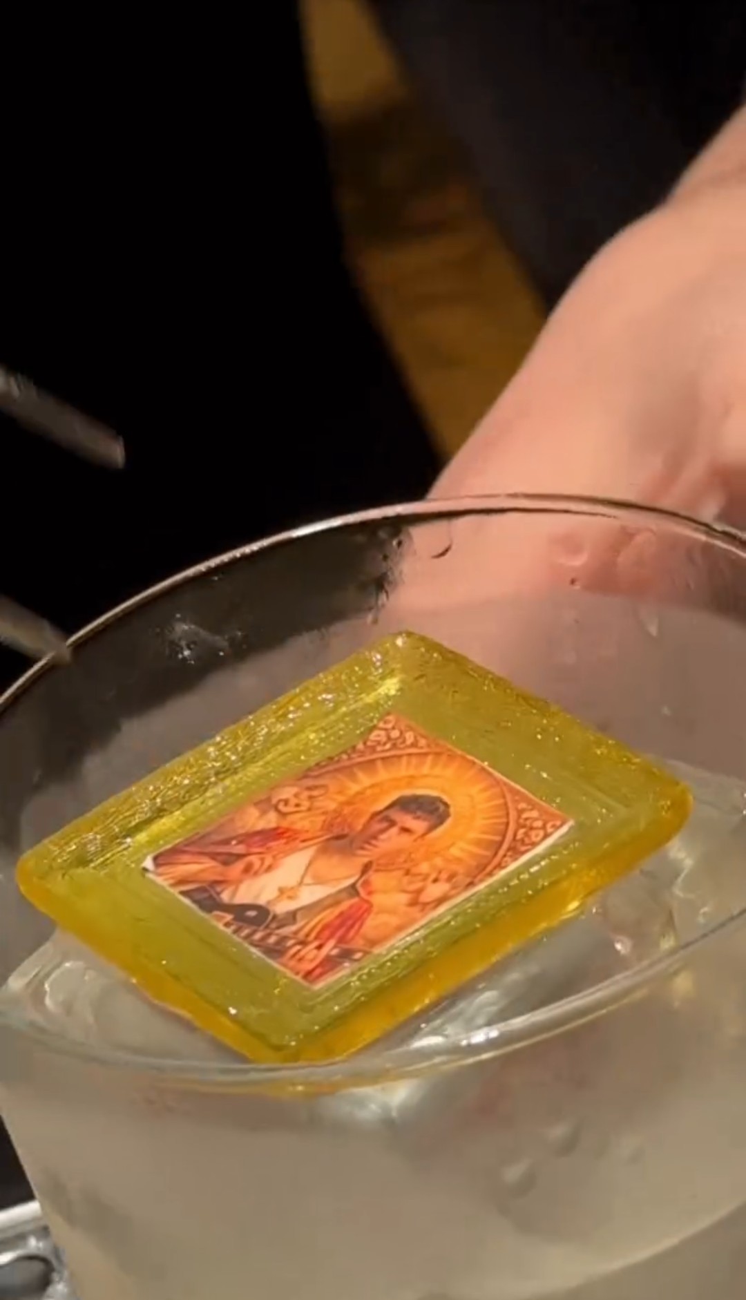 Іван Люленов використовував образ священницького одягу та прикрасив алкогольні коктейлі зображеннями у вигляді ікон.