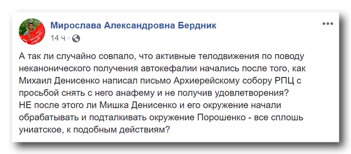 А так ли случайно совпало, что активные телодвижения по поводу неканонического получения автокефалии начались после того, как Михаил Денисенко написал письмо Архиерейскому Собору РПЦ с просьбой снять с него анафему и не получив удовлетворения?