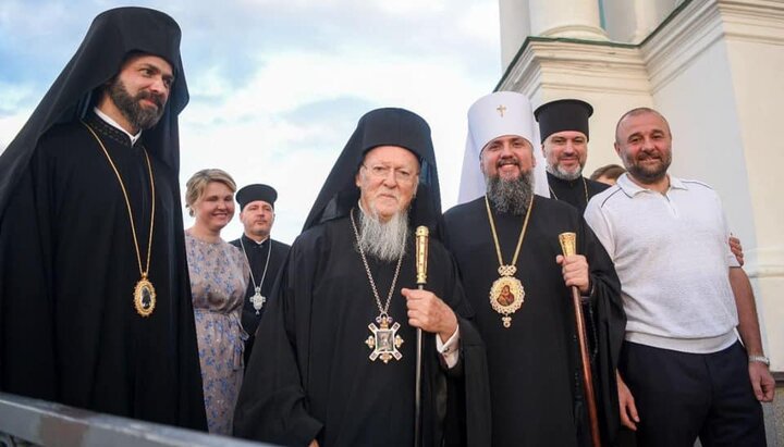 На фото: по центру Всесвятейший Патриарх Варфоломей рядом с Епифанием митрополитом Киевским и всея Украины. Слева от Епифания (в белой футболке) известный меценат Александр Петровский, именуемый в простонародье Нарик.