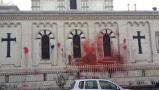 Вандали облили червоною фарбою вхід до кафедрального собору УПЦ у Черкасах
