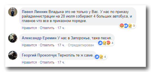 Як виявилося, це не одиничний випадок застосування адмінресурсу і подібне відбувається по всій Україні. СПЖ зібрала свідчення про те, як влада допомагає Київському патріархату забезпечити звезення людей, в тому числі й під примусом, на «хресну ходу» Київського патріархату.