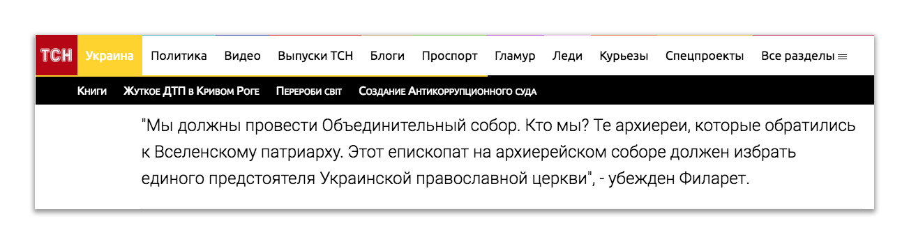 «Звичайно, частина Московського патріархату не приєднається до цієї української церкви (ЄПЦ, – ред.). А оскільки вони не приєднаються, то вони не повинні називатися українською церквою. Вони мають право на своє існування в Україні нарівні з іншими церквами, нарівні з Українською православною церквою (знову ж таки – ЄПЦ, – ред.). Тобто, закони українські дають право на свободу всім. Але називатися ця церква повинна Російською православною церквою в Україні». Точнісінько, як пропонує законопроект 5309!