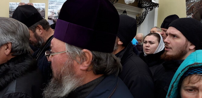 Це особливо відчувалося, коли священики і миряни йшли по центральній вулиці до кафедрального собору, захопленого розкольниками, щоб помолитися біля могили митрополита Макарія (Свистуна), колишнього багато років правлячого архієрея Вінницької єпархії. Скільки недобрих поглядів і стримуваного обурення на обличчях перехожих! «Ось, московські попи знову права качають». З промитими ЗМІ мізками ці люди вже, напевно, не можуть бачити очевидного і задуматися над тим, що відбувається.