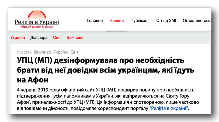 4 червня 2019 року офіційний сайт Української Православної Церкви повідомив, що всім паломникам УПЦ на Афон потрібні спеціальні довідки: