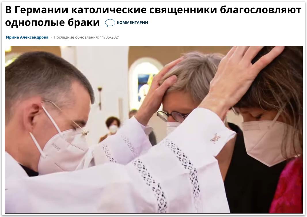 Водночас католики просто зі шкіри лізуть, щоб йти в ногу з часом і відповідати запитам суспільства. І це веде до того, що ідеологія ЛГБТ і гендеру досить глибоко пустили в них своє коріння. Що їх чекає далі, можна побачити у протестантських деномінаціях – там уже давно «єпископами» стають відкриті лесбіянки.